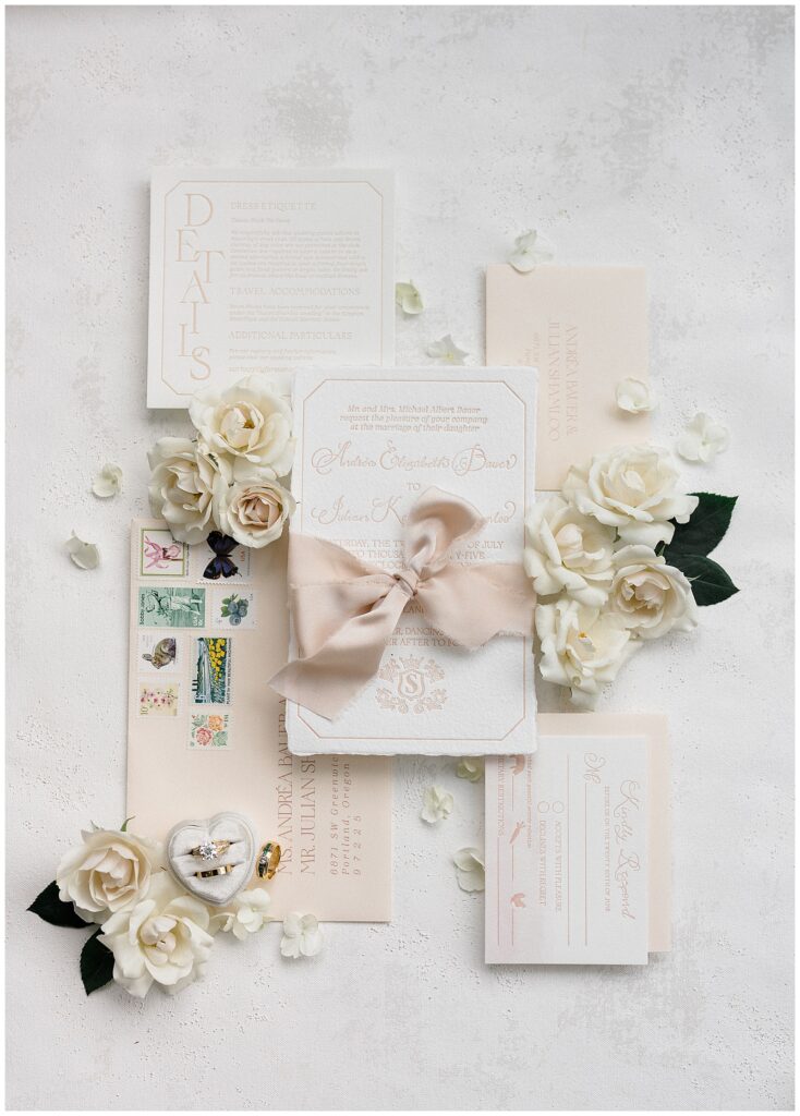 When it comes to timeless romance and modern sophistication, few venues compare to Waverley Country Club in Portland, Oregon. Nestled along the banks of the Willamette River, it’s a venue that perfectly balances classic architecture with lush, picturesque grounds, and Andréa and Julian’s wedding with Bridal Bliss showcased everything that makes it so special.