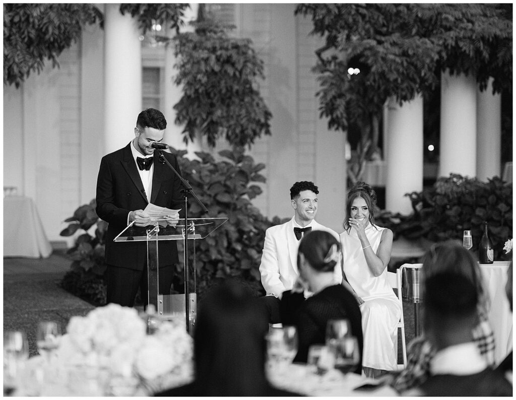 Andréa and Julian exchanged vows on the sweeping lawn overlooking the water; an iconic backdrop for a Waverley Country Club ceremony. The scene was effortlessly elegant: gentle summer light, soft florals in muted tones, and the tranquil reflection of the river setting the tone for a heartfelt and beautifully personal ceremony. Throughout the celebration, Andréa and Julian infused meaning into every design choice. From custom stationery and curated tablescapes to their modern-meets-romantic color palette, their wedding was a reflection of refined taste and genuine emotion. The day felt cohesive and intentional; each element contributing to an atmosphere of warmth and understated luxury.