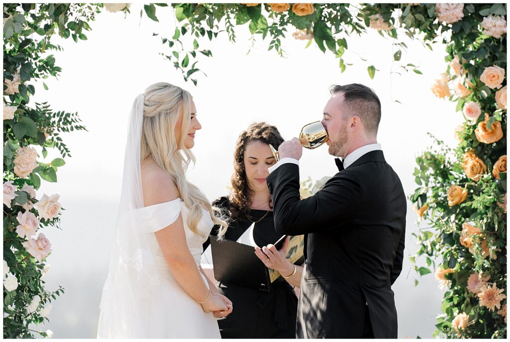 After their heartfelt ceremony, guests gathered for cocktails on the terrace. The day unfolded with a sense of ease and authenticity; filled with the joy of being surrounded by their closest people. As the sun set over the hills, the evening transitioned seamlessly into dinner and dancing, a reflection of everything Lincoln and Alec value most: family, intention, and connection.
